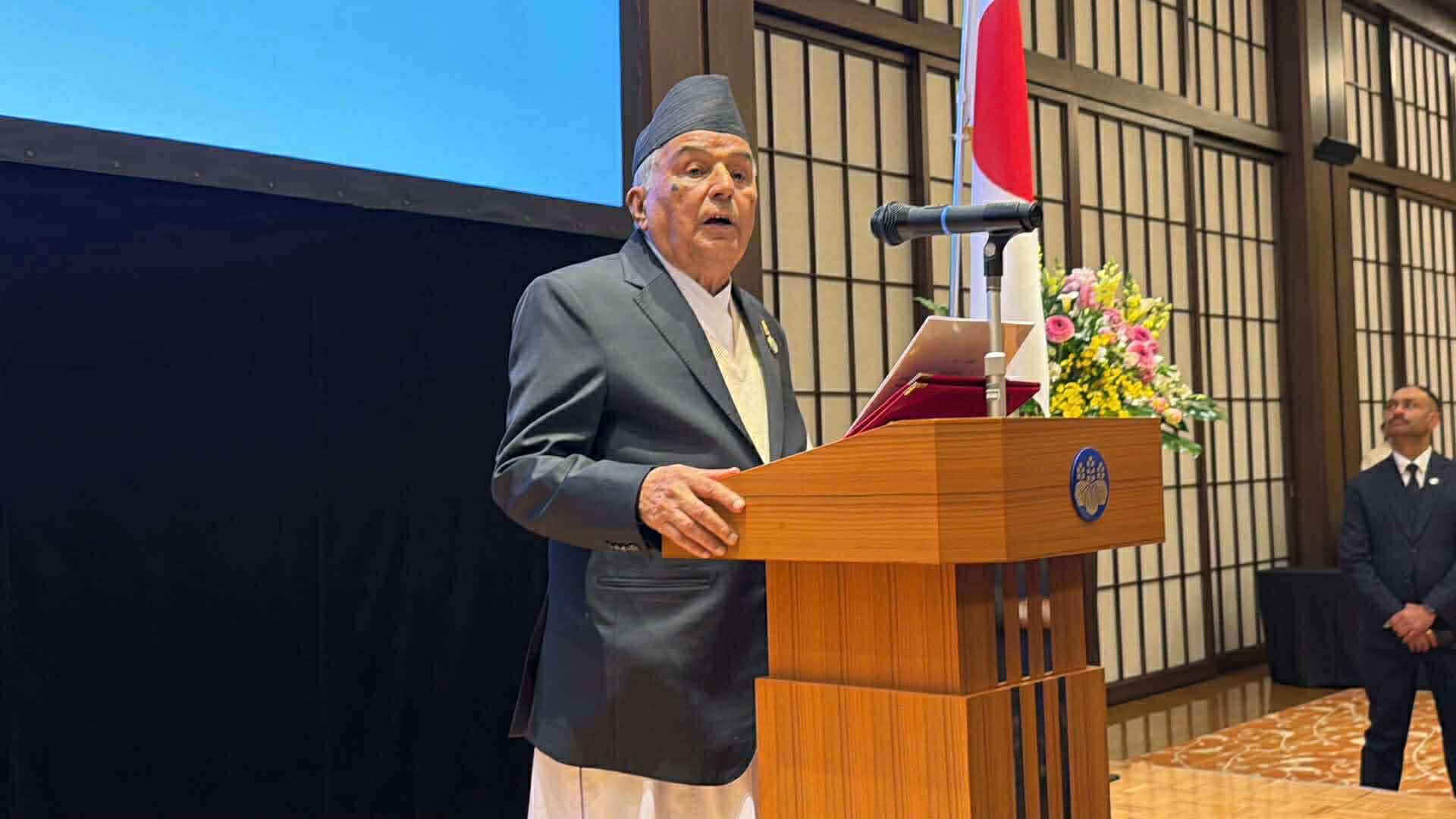 नेपाल र जापानबीच कूटनीतिक सम्बन्ध स्थापनाको ७०औं वार्षिकोत्सव मनाउन आज यहाँ आयोजित विशेष समारोहलाई सम्बोधन गर्दै उहाँले सो आग्रह गर्नुभएको हो । राष्ट्रपति पौडेलले राजनीतिक मुद्दाहरूलाई निष्कर्षमा पु¥याएपश्चात्, नेपालको प्राथमिकता अब नेपाली जनताको द्रुत सामाजिक–आर्थिक विकास, प्रगति र समृद्धि हासिल गर्नुमा केन्द्रित रहेको छ भन्नुभयो ।